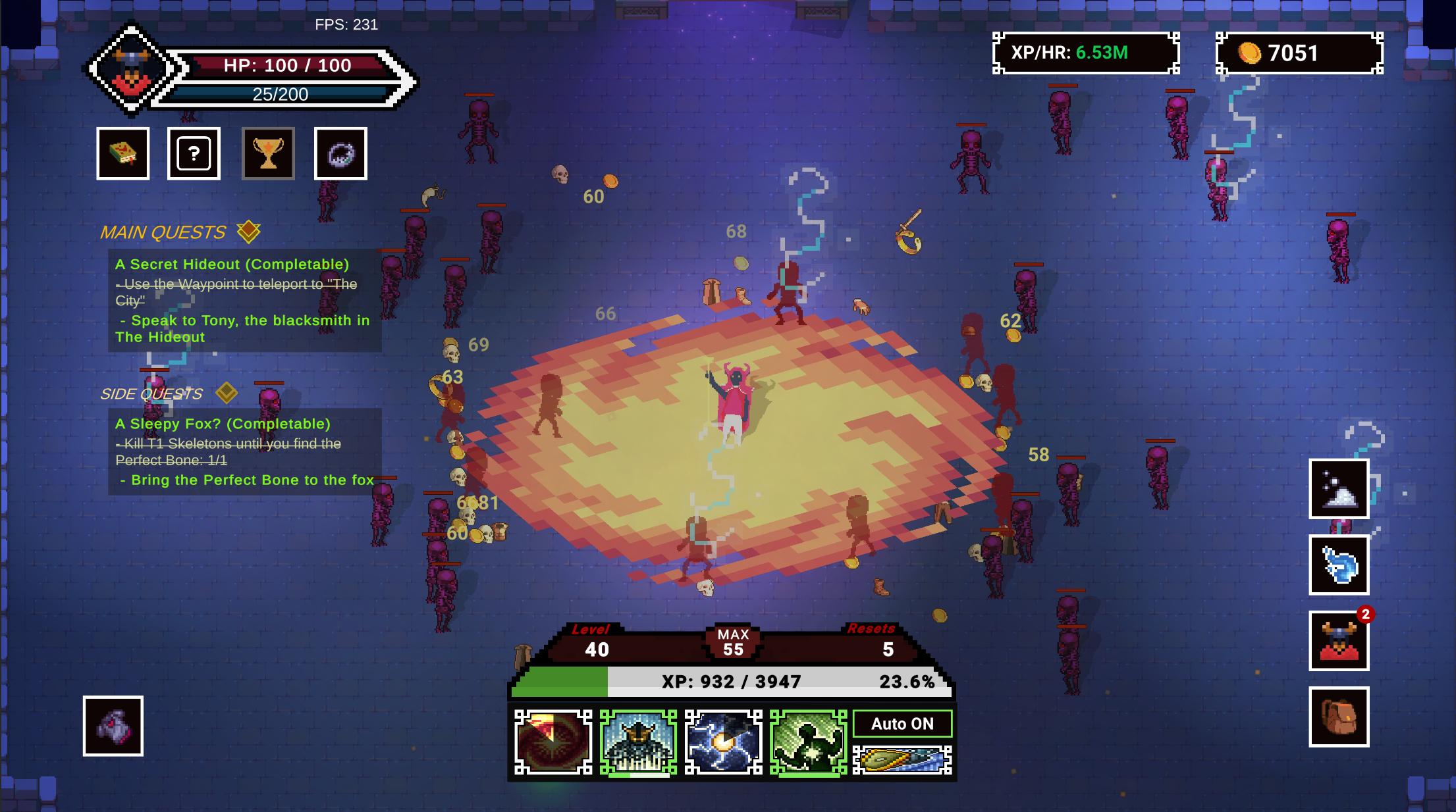 I played for a while longer yesterday and still enjoyed the time. I agree with the commenter mentioning the very easy gameplay, a bit more of a difficulty curve until you feel like you are a force to be reconed with might be a good route. As in: It's easy to idle on a stage you already leveled yourself up for and equipped stuff, but once you step into another level, things get a bit harder again, giving more of a challenge. One of the main reasons I like idles is the progression of feeling weak to hitting a wall and overcoming it, then coasting along for a while enjoying the newfound power until the next challenge comes up.