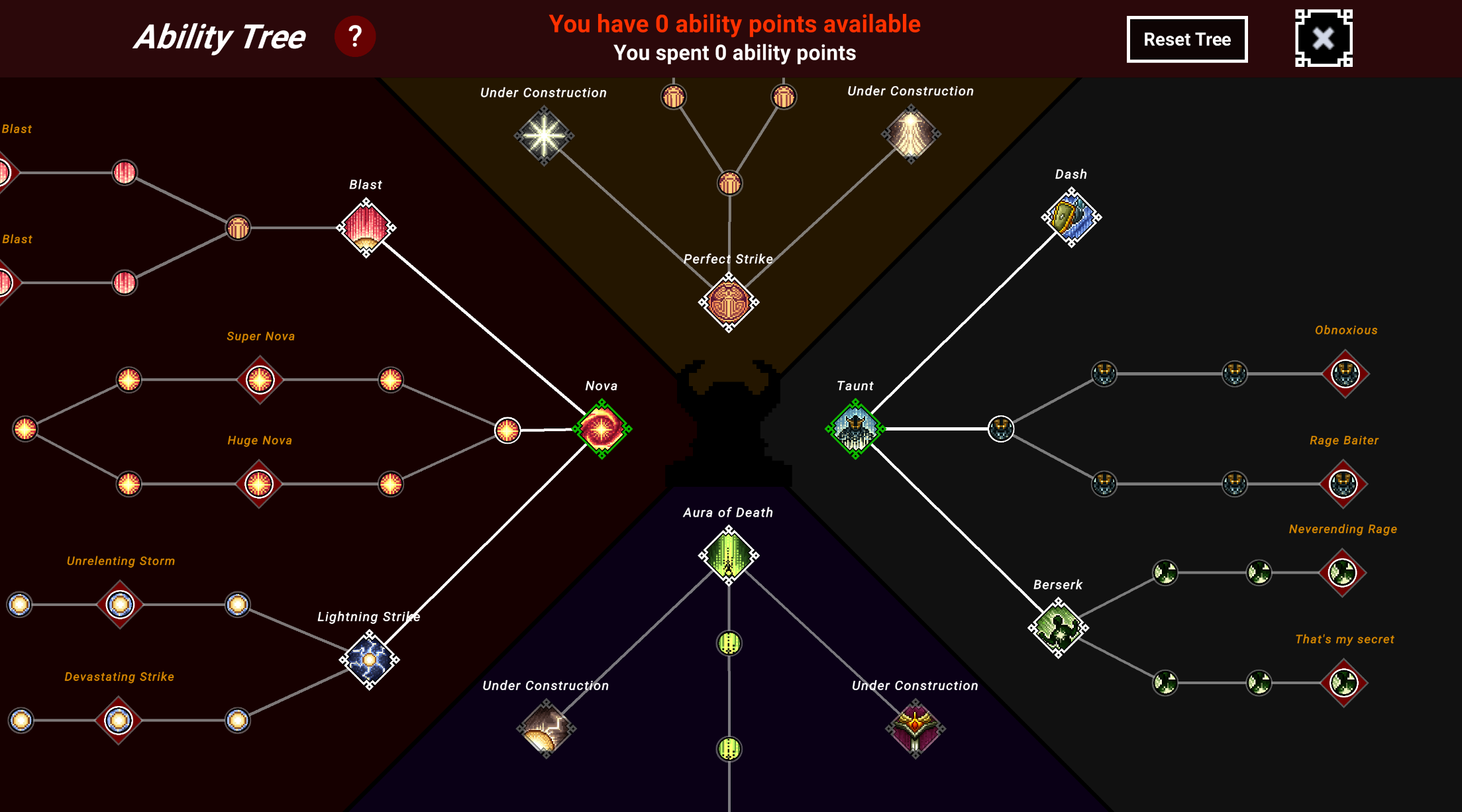 When I am in the Ability tree and click the reset tree button, I am unable to reallocate any of my points, breaking the game.This was when playing in the browser, the download works just fine.I'm not sure whether it's a bug but, all sustained skills(like buffs and Aura of Death) can be persistent forever, just cast them and remove them in the duration time. And, when I act like this, I found I can't cast Perfect Strike and Berserk, although it seems that they are working.